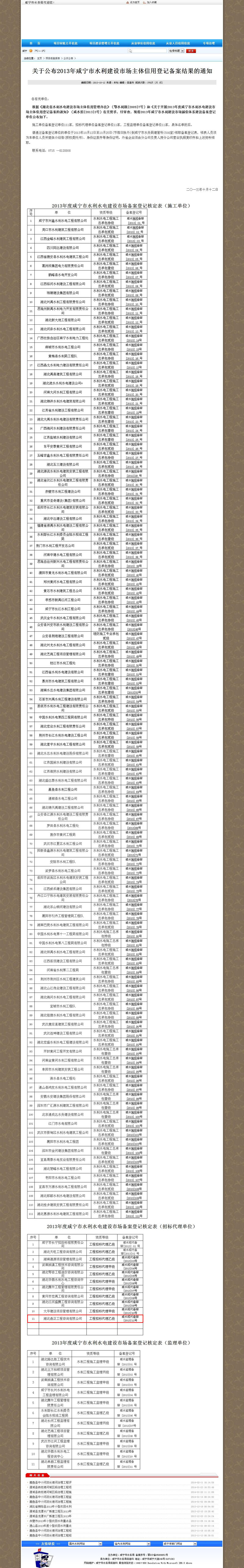 我公司成功入選2013年咸寧市水利建設(shè)市場主體信用登記備案單位