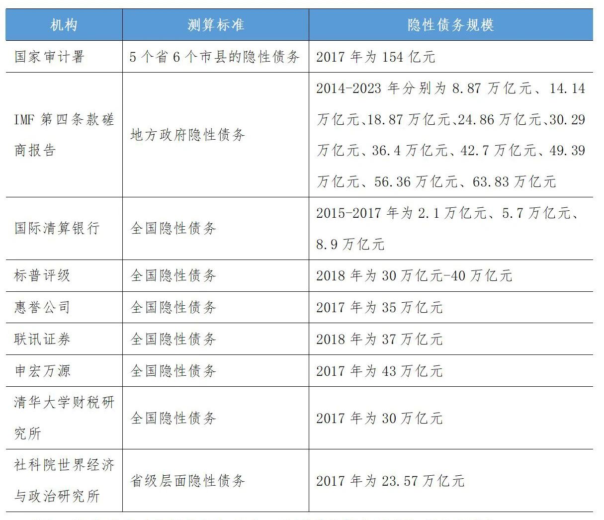 表1-1 關(guān)于隱性債務(wù)規(guī)模的測(cè)算