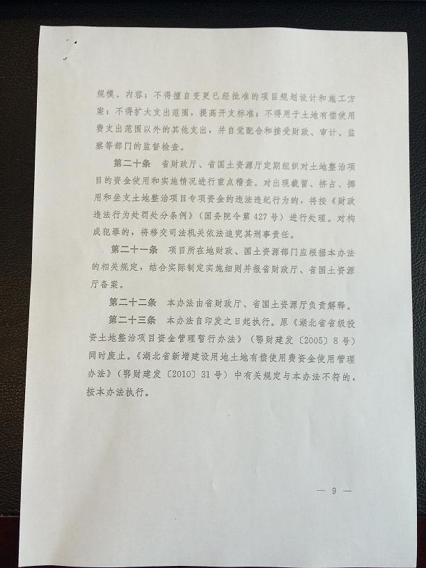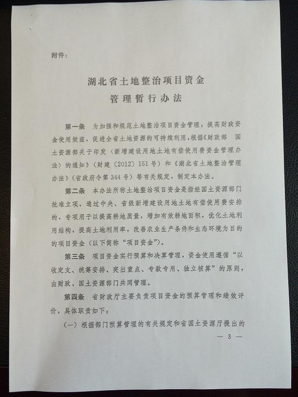湖北省土地整治項(xiàng)目資金管理暫行辦法